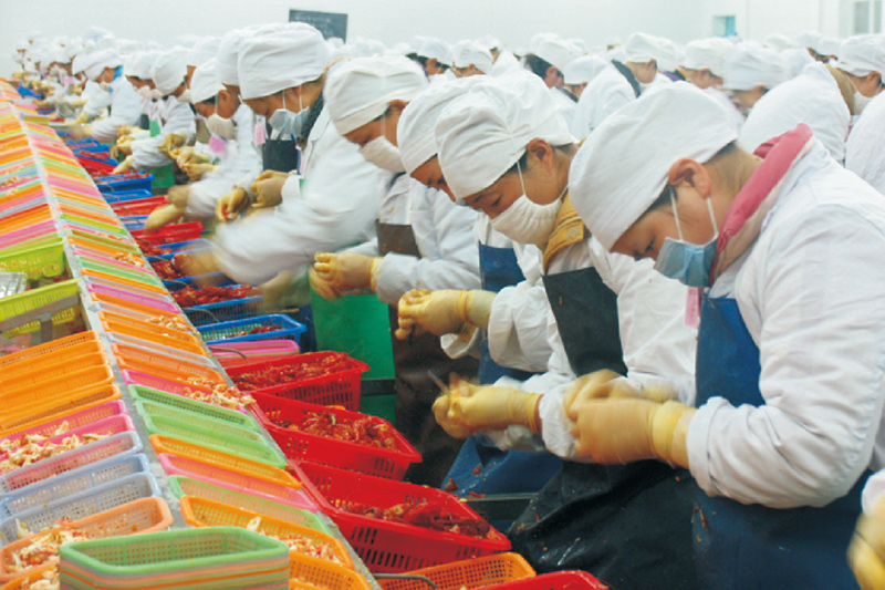昌貴水產(chǎn)大力推行“公司+基地+農(nóng)戶”的農(nóng)業(yè)產(chǎn)業(yè)化經(jīng)營(yíng)模式,依托江漢平原豐富的水產(chǎn)資源優(yōu)勢(shì),建立了3萬(wàn)畝出口加工原料養(yǎng)殖基地,與2000多戶農(nóng)民簽定原料供應(yīng)合同,每年直接和間接帶動(dòng)農(nóng)民增收5000多萬(wàn)元。公司占地面積106畝,現(xiàn)有季節(jié)性員工1600多名,年加工能力6萬(wàn)噸,年產(chǎn)值7億元,成為全省最大的冷鮮魚和淡水魚糜加工企業(yè)之一,被授予湖北省農(nóng)業(yè)產(chǎn)業(yè)化重點(diǎn)龍頭企業(yè)。